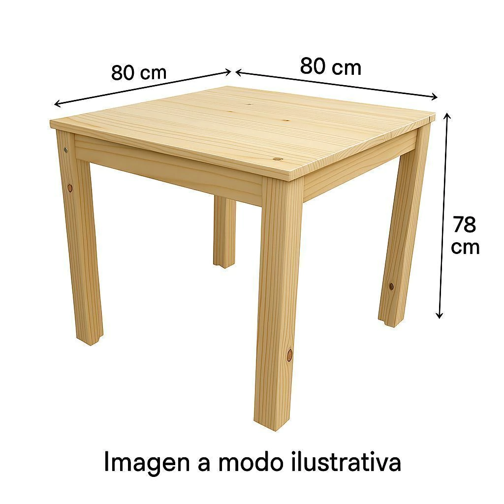 * Mesa de 80x80 con regrueso de 4 cm y 4 Patas en L de 7 cm por lado, la mesa se entrega desarmada para facilitar el traslado e ingreso al domicilio. (Ver Plano de armado).